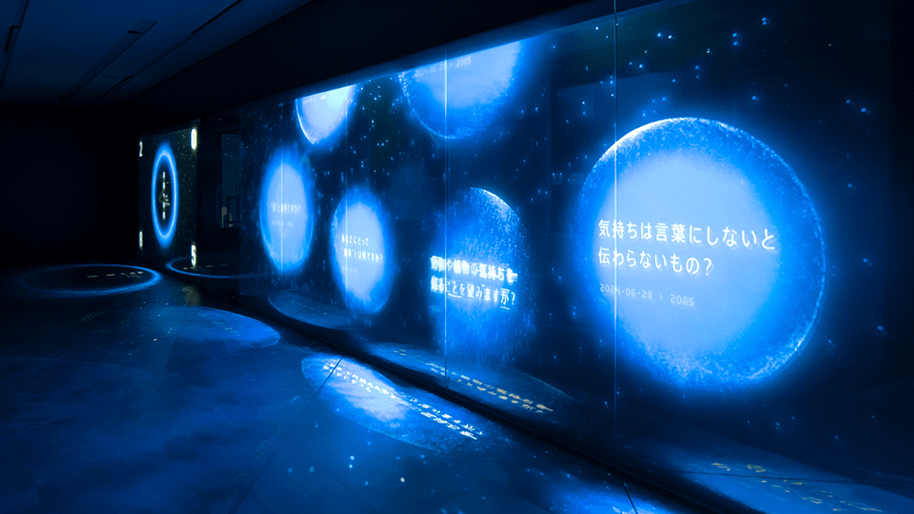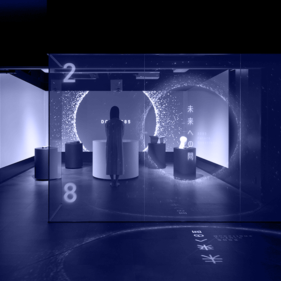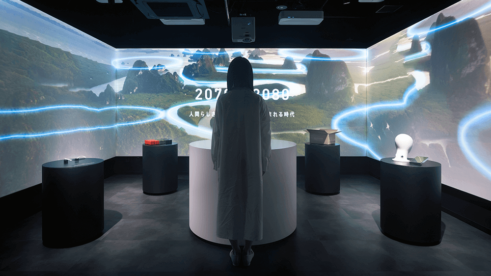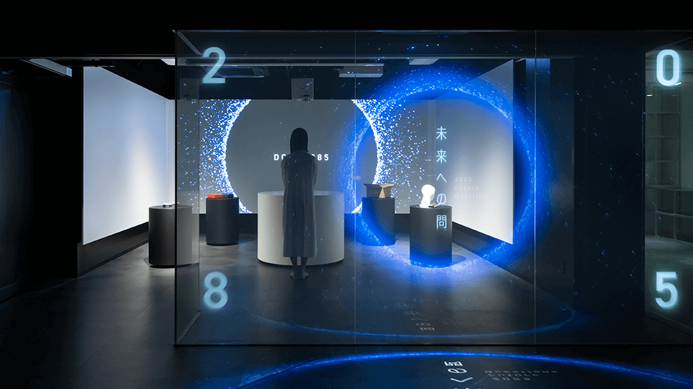 未来への「問」を起点とした未来想像を生み出す対話の場「DOCK2085 」。展示エリアは「貴少性への好奇心」を軸に、過去・未来・現在と分かれ、過去の貴少性の歴史、2085年の未来の貴少性、よりよい未来の実現に向け動き出している現在の研究の一端を展示しています。