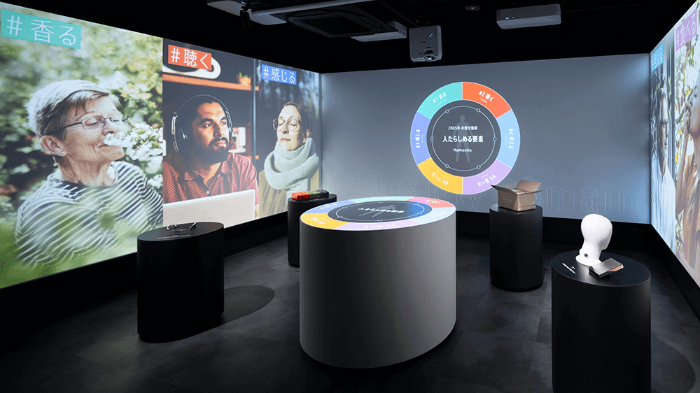 未来からの幸せに関する問いを考えるプロセスが「未来想像」となり、その解を模索し続けることが「未来創造」という活動を支えています。一連の「未来想像」において、貴少価値の追求が共通テーマとして浮かび上がり、それはヒトそのものを探求することです。
